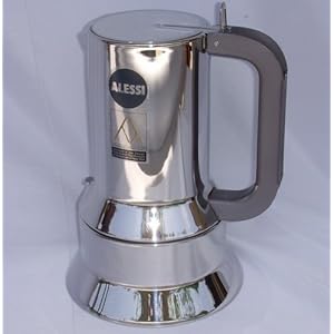 This espresso coffee maker Alessi represents advanced level Italian design joined to the high class technology. Its body is within 18/10 stainless steel, polished around the outside and satin-finished for the inside, which has a particular patented system of opening, is cared for in most detail that has managed to get famous within the whole world. It has three different capacities: 10, 6 ,3 and 1 cup, all using a reducing filter that halves the coffee doses and cups. It makes great coffee, such as the Italian tradition, emphasising its aroma and suitable for almost any situation. Alessi coffee maker is exhibited with the permanent "Design Collection" of M.O.M.A in New York since 1979. Capacity : 10/6 cups; cl.: 50/10 Sources of warmth : Gas Electricity Induction Glassceramic Halogen